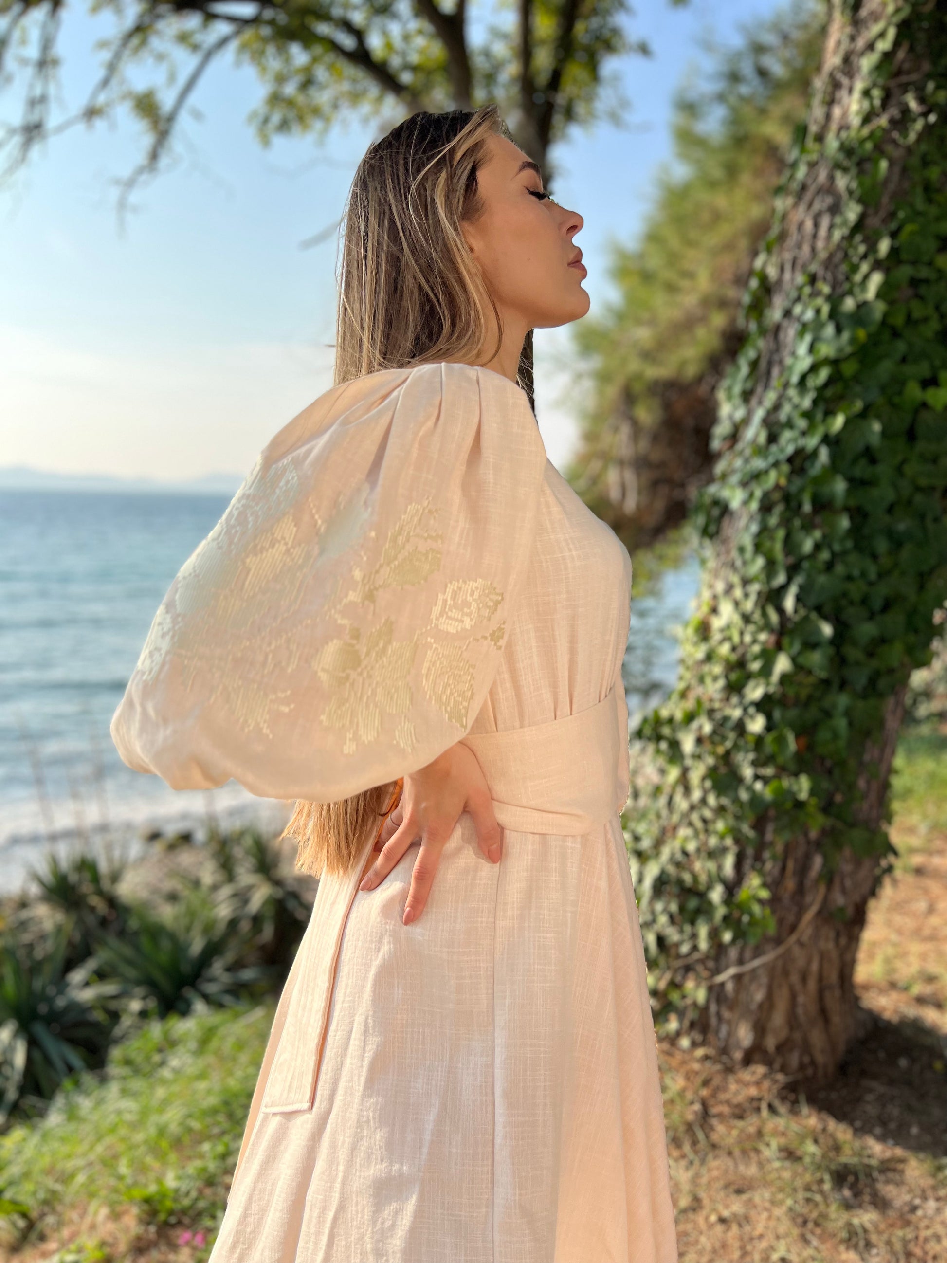 Linen, embroidery.